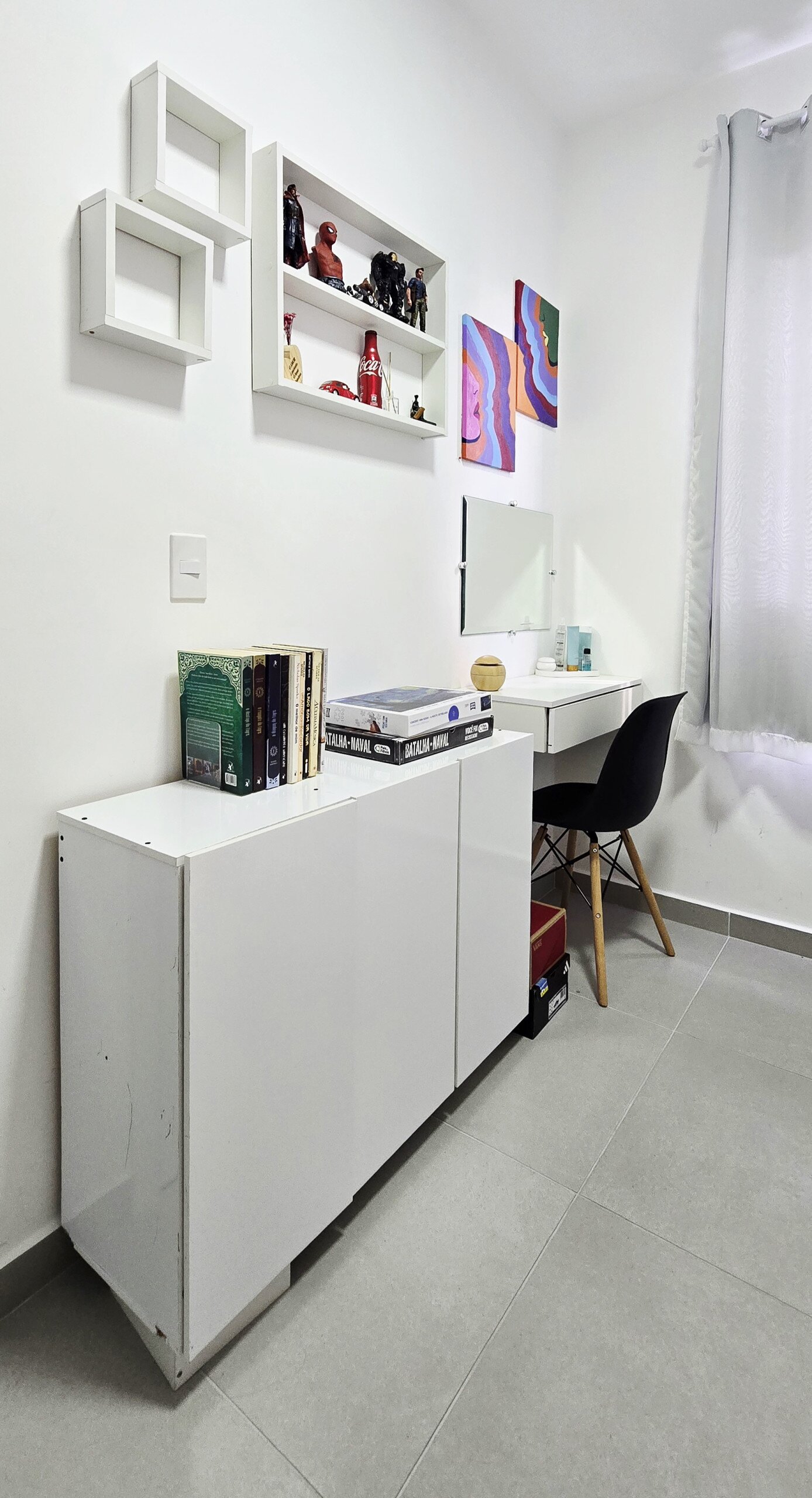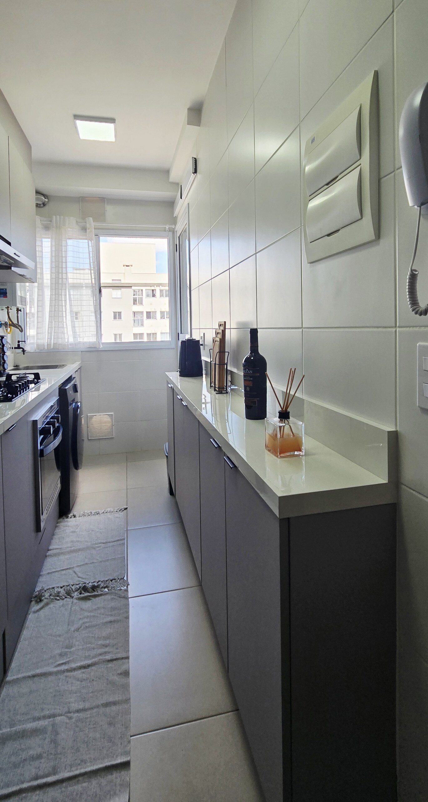 Piso porcelanato em todo o apartamento.