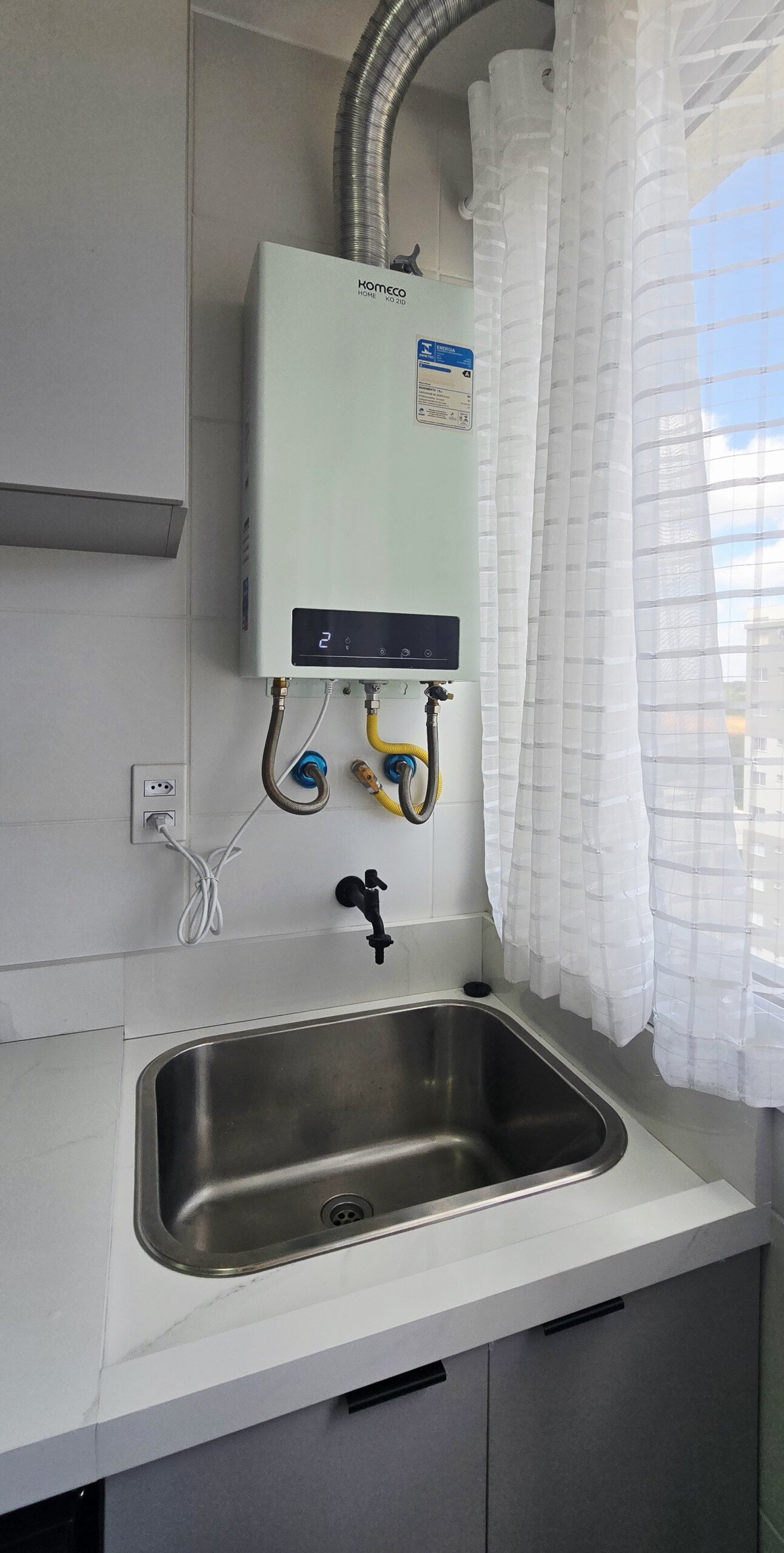 Tubulação de água quente no banheiro e cozinha.