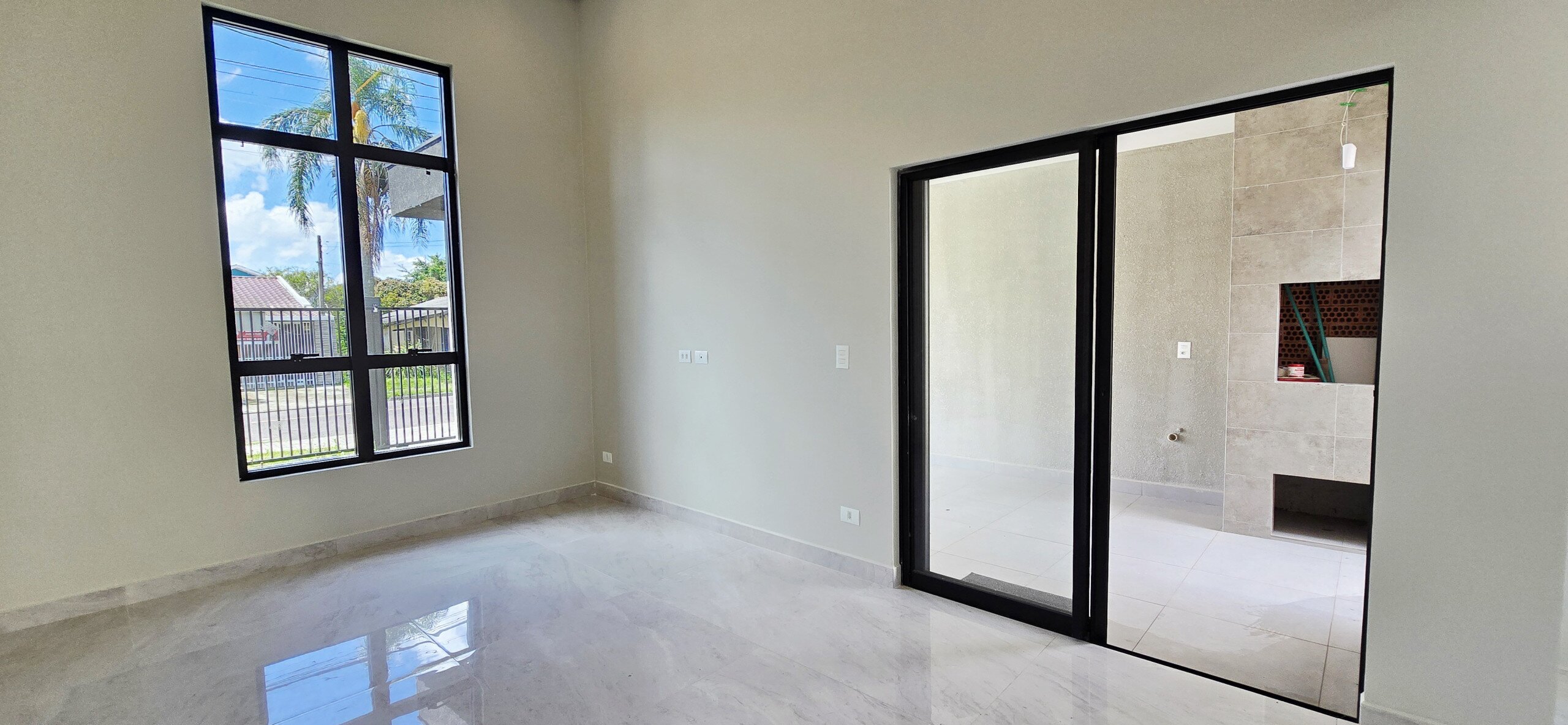 - Salas e cozinha em conceito aberto.