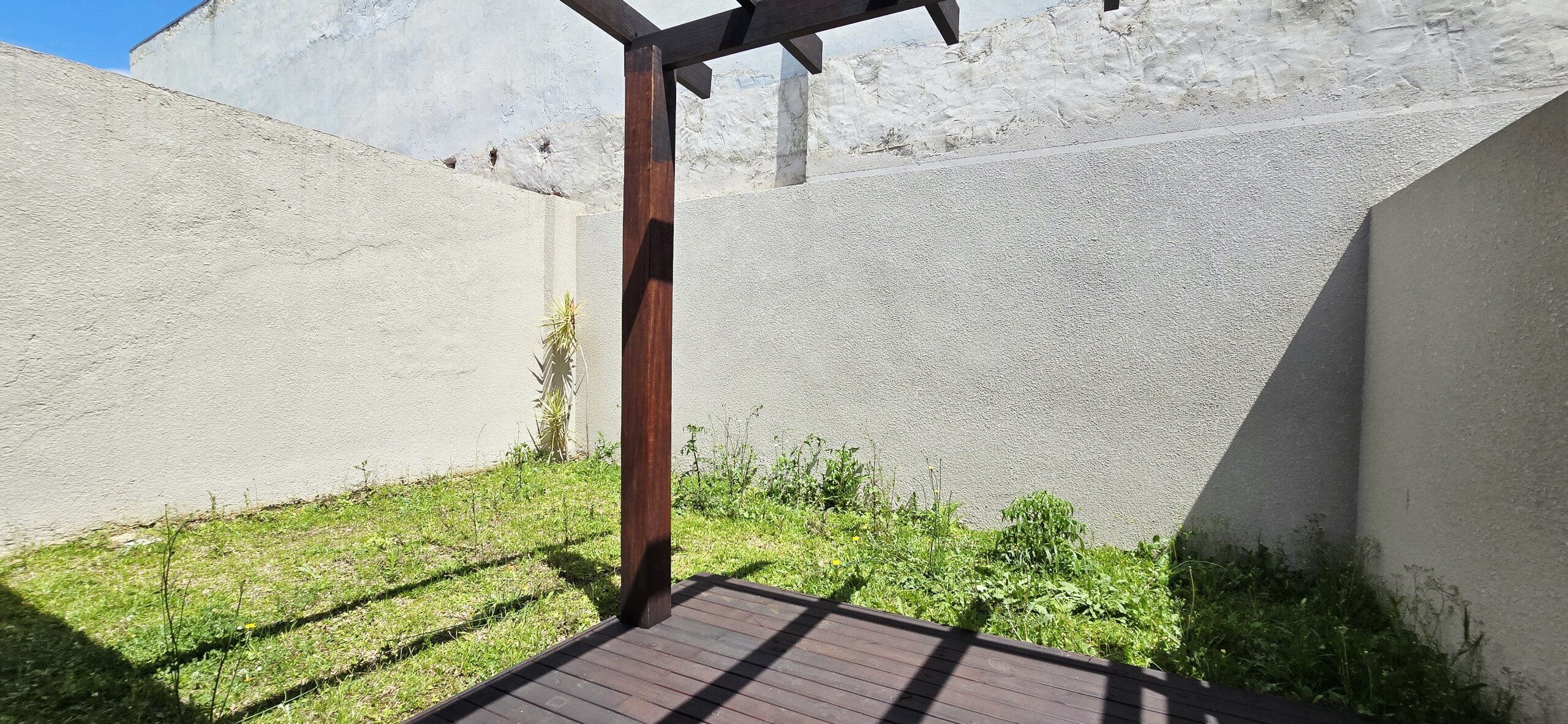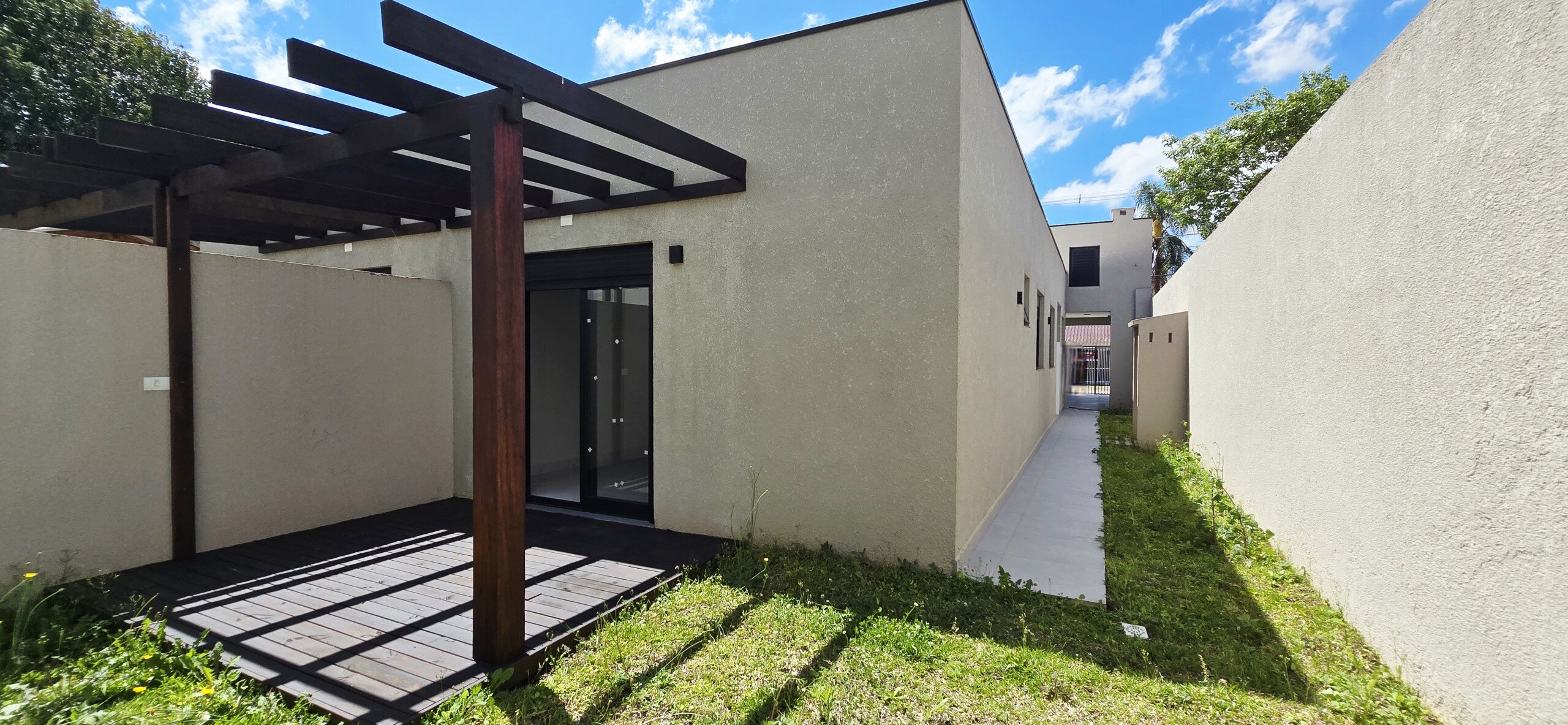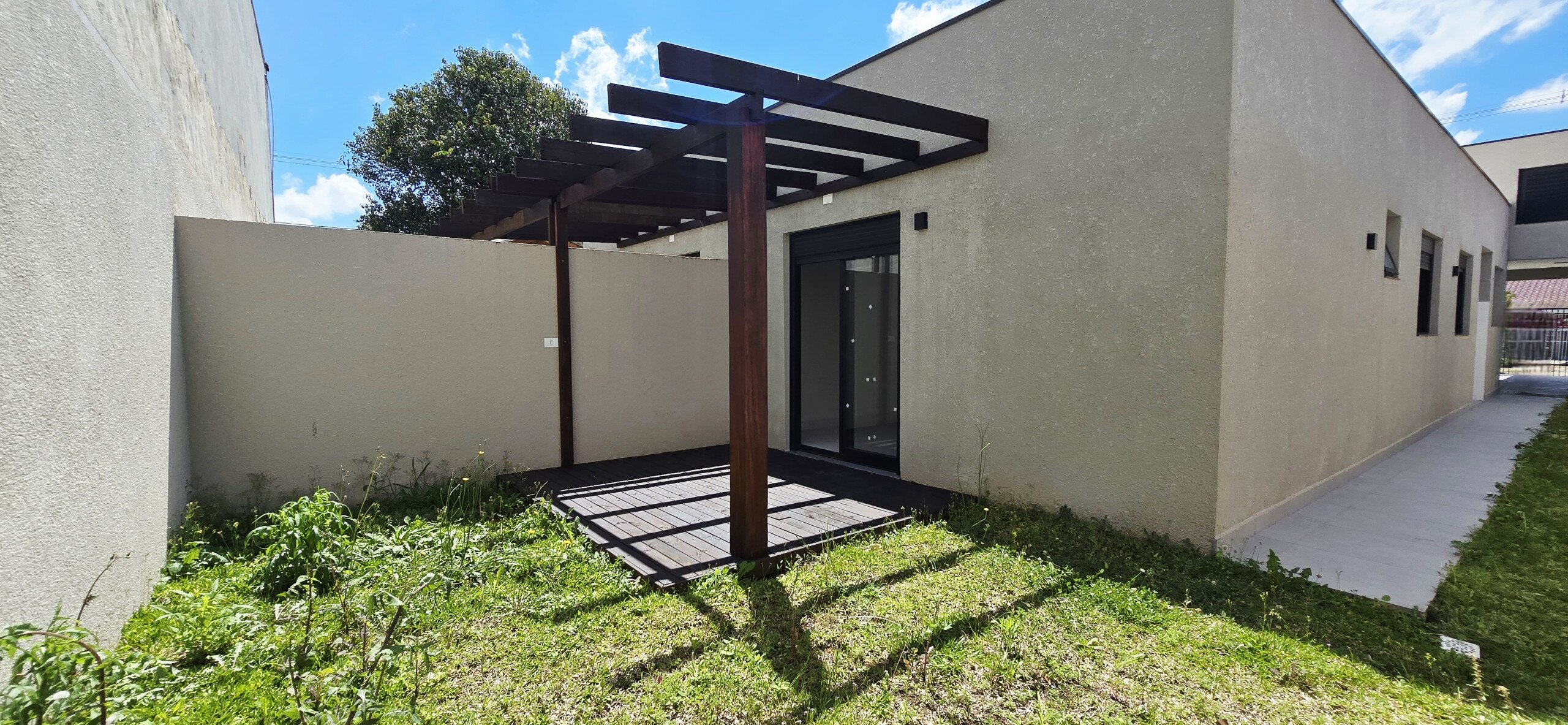 Pergolado e deck na saída da suíte para o quintal.
