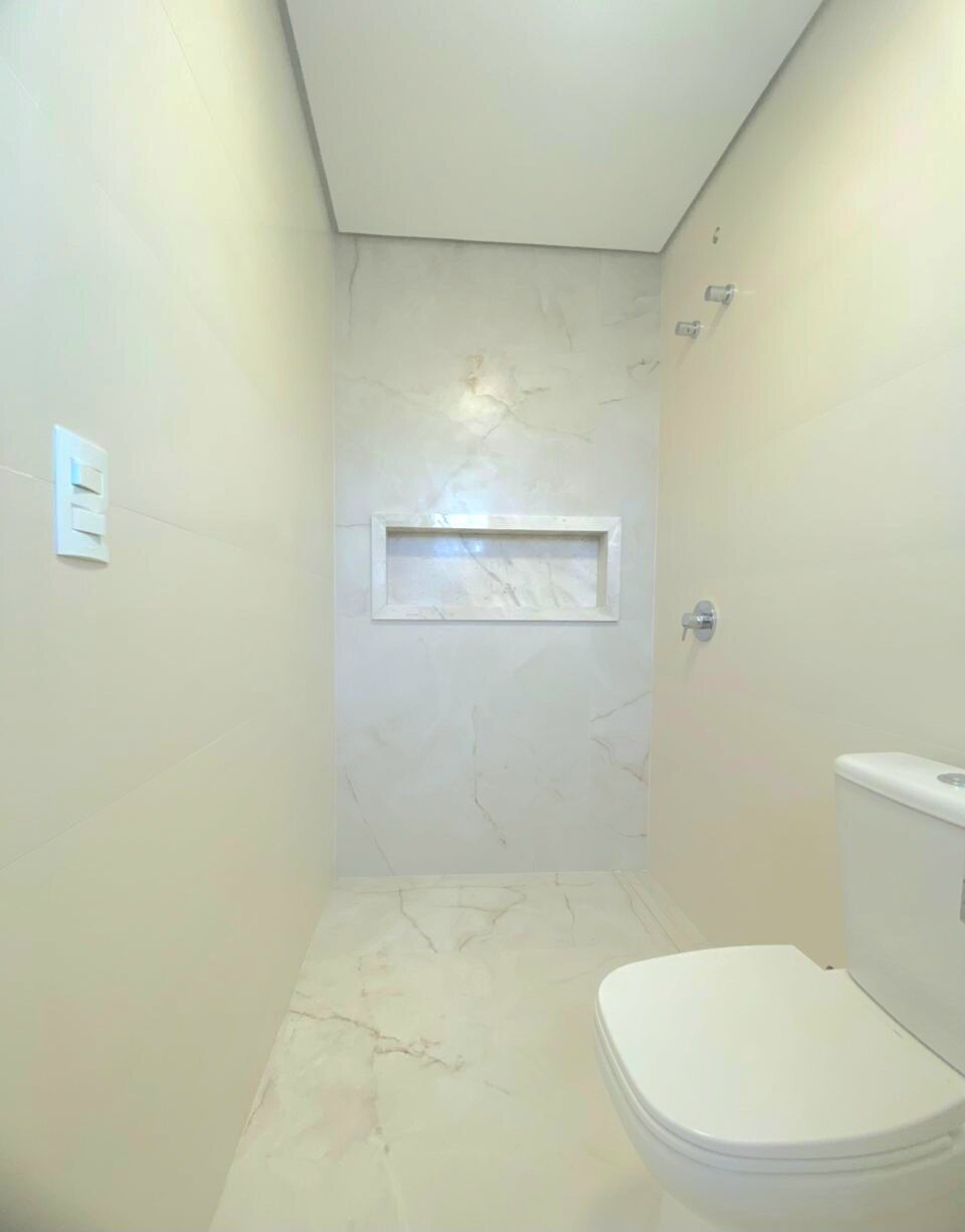 No terceiro pavimento, estão os 3 quartos, incluindo uma suíte espaçosa com closet, além de um banheiro social que atende os outros dormitórios.