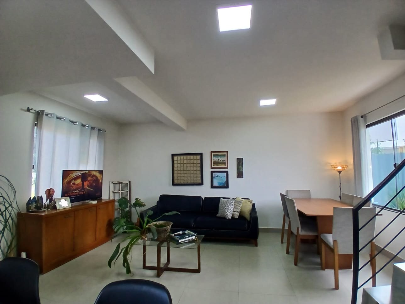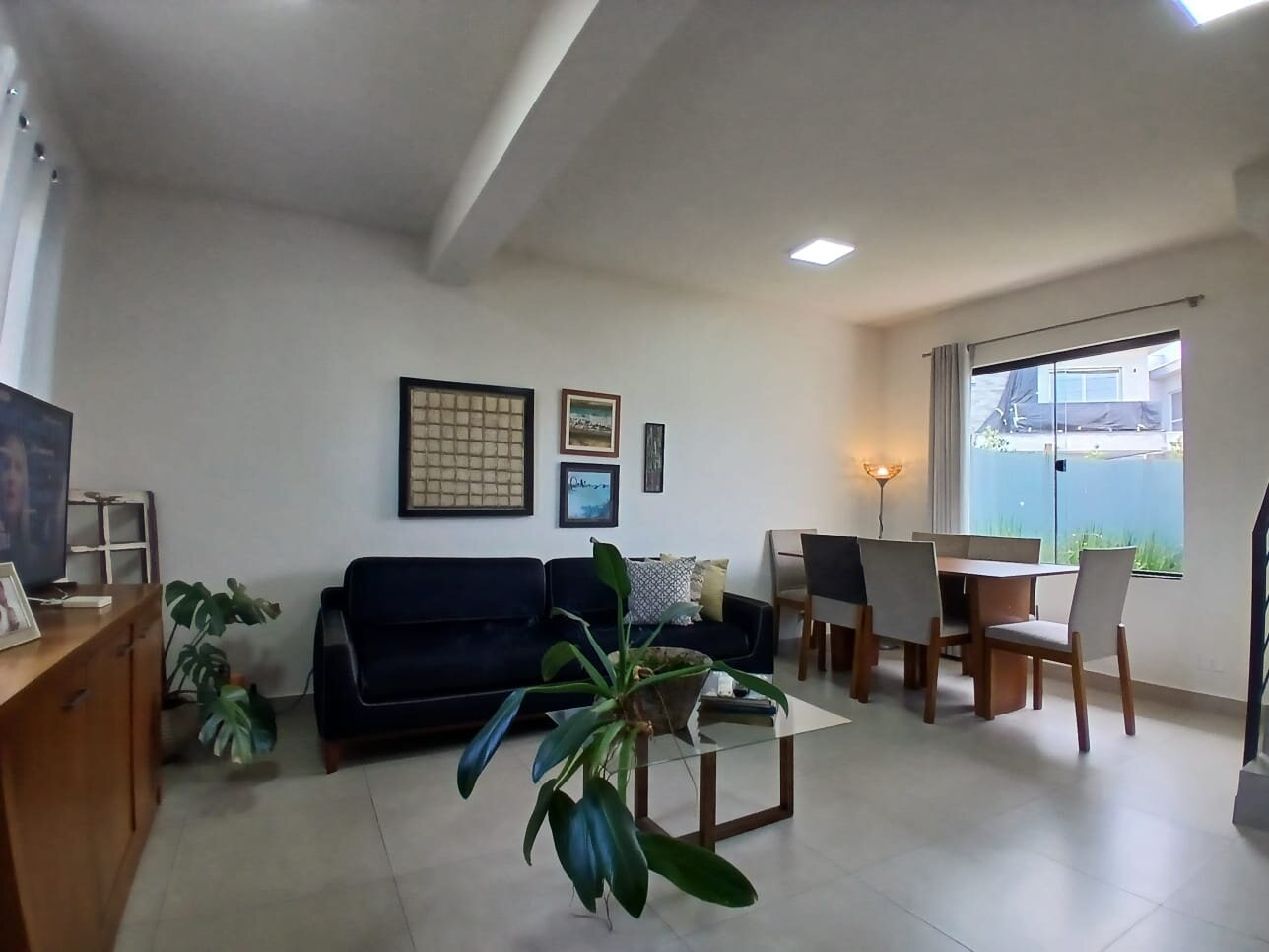 A área social é bem distribuída, com sala de estar e jantar integradas, excelente iluminação natural e acesso direto ao quintal — criando um ambiente perfeito tanto para o dia a dia quanto para receber.