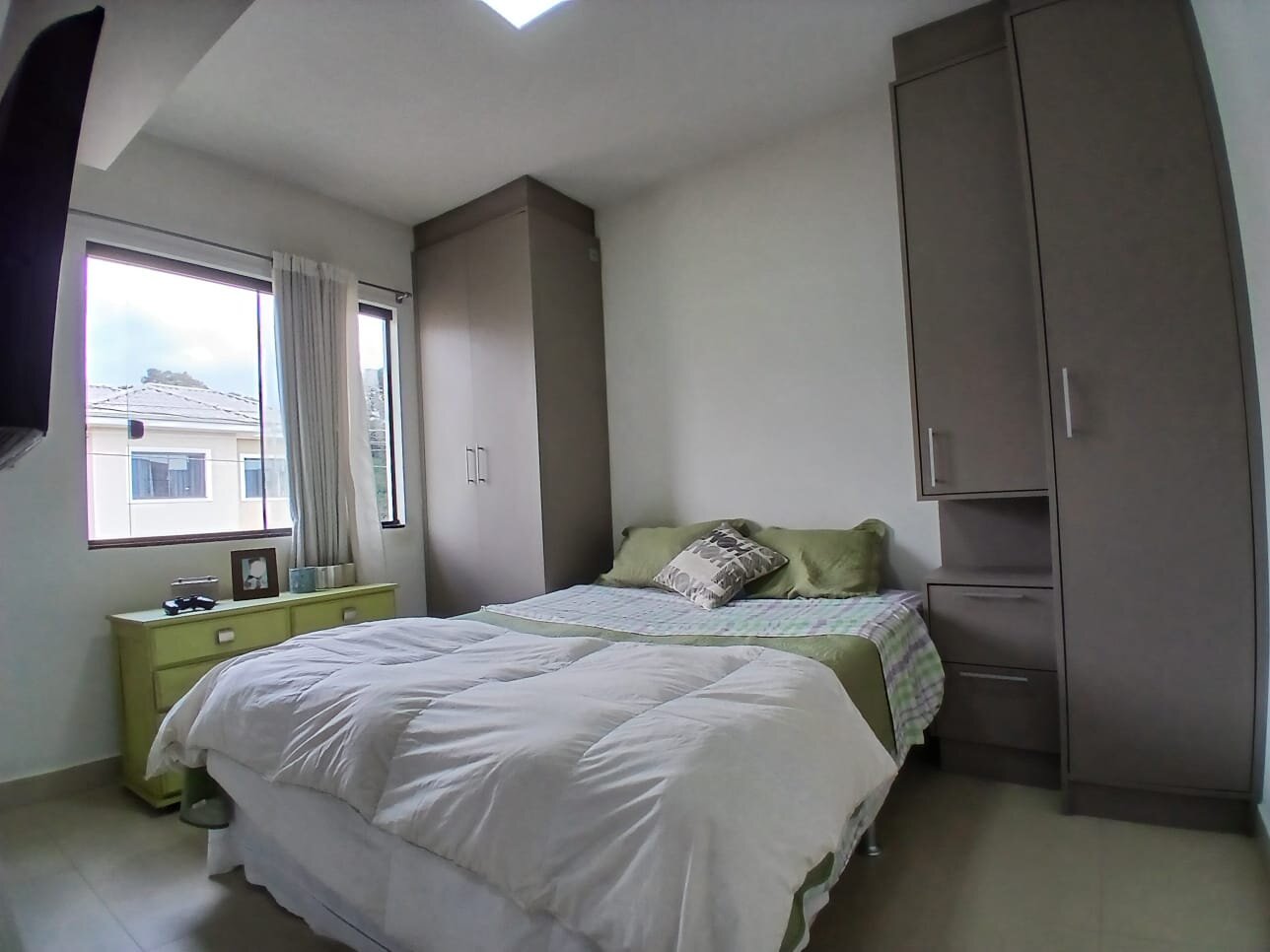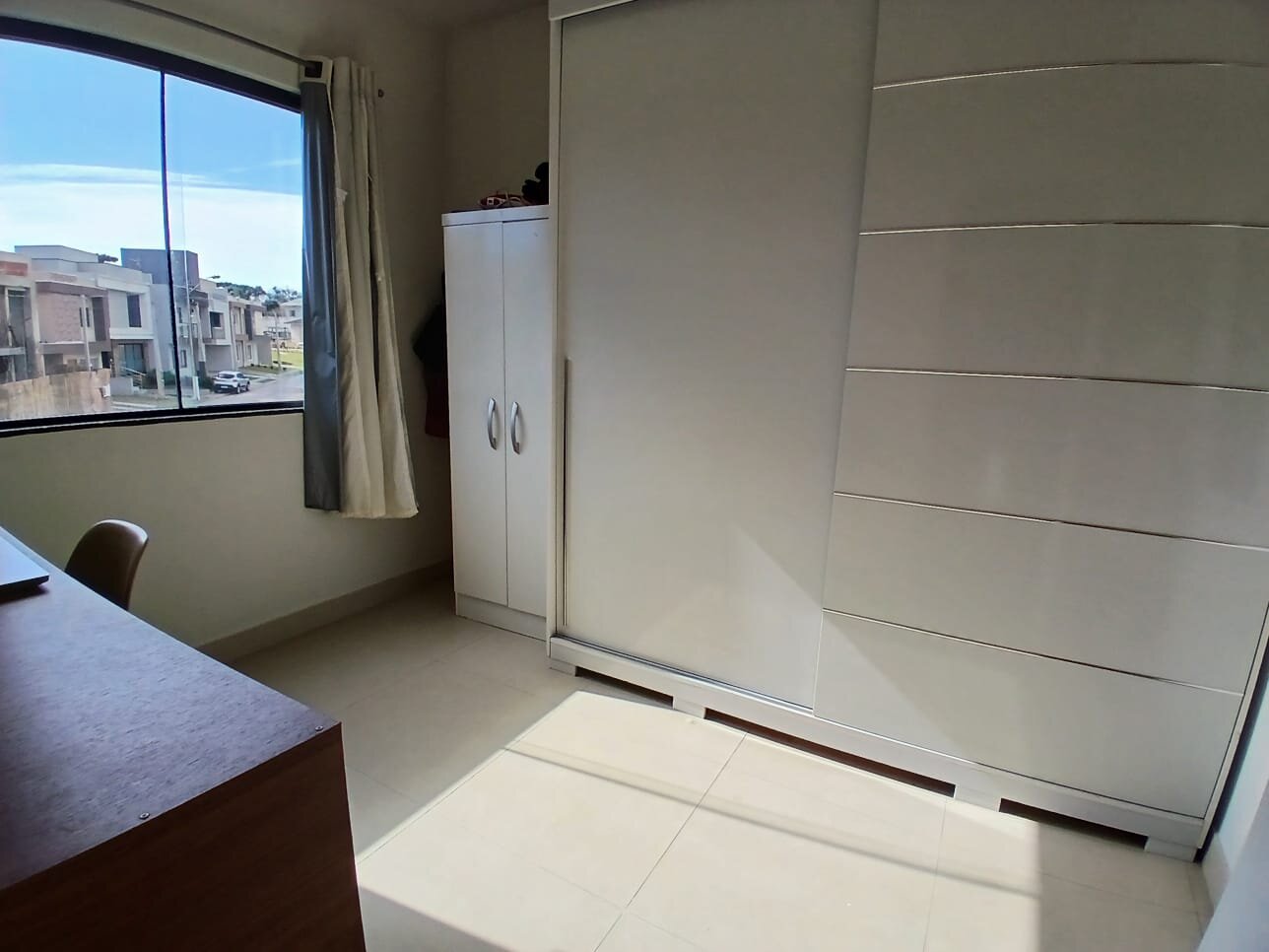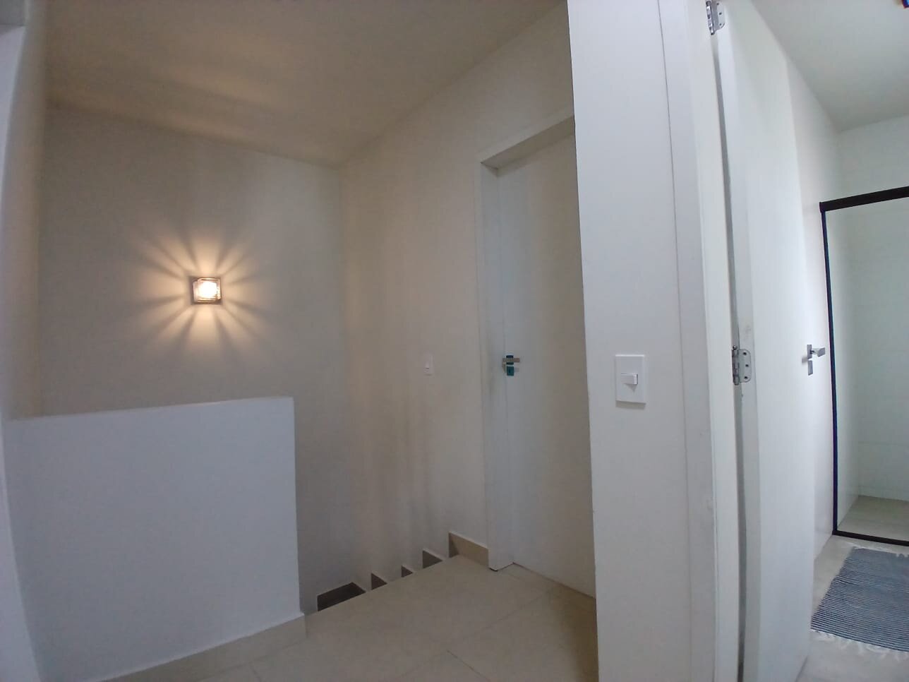 No pavimento superior, a suíte dispõe de armários planejados e painel de TV. Os demais dormitórios são bem dimensionados, e os banheiros contam com armários e box em vidro temperado.