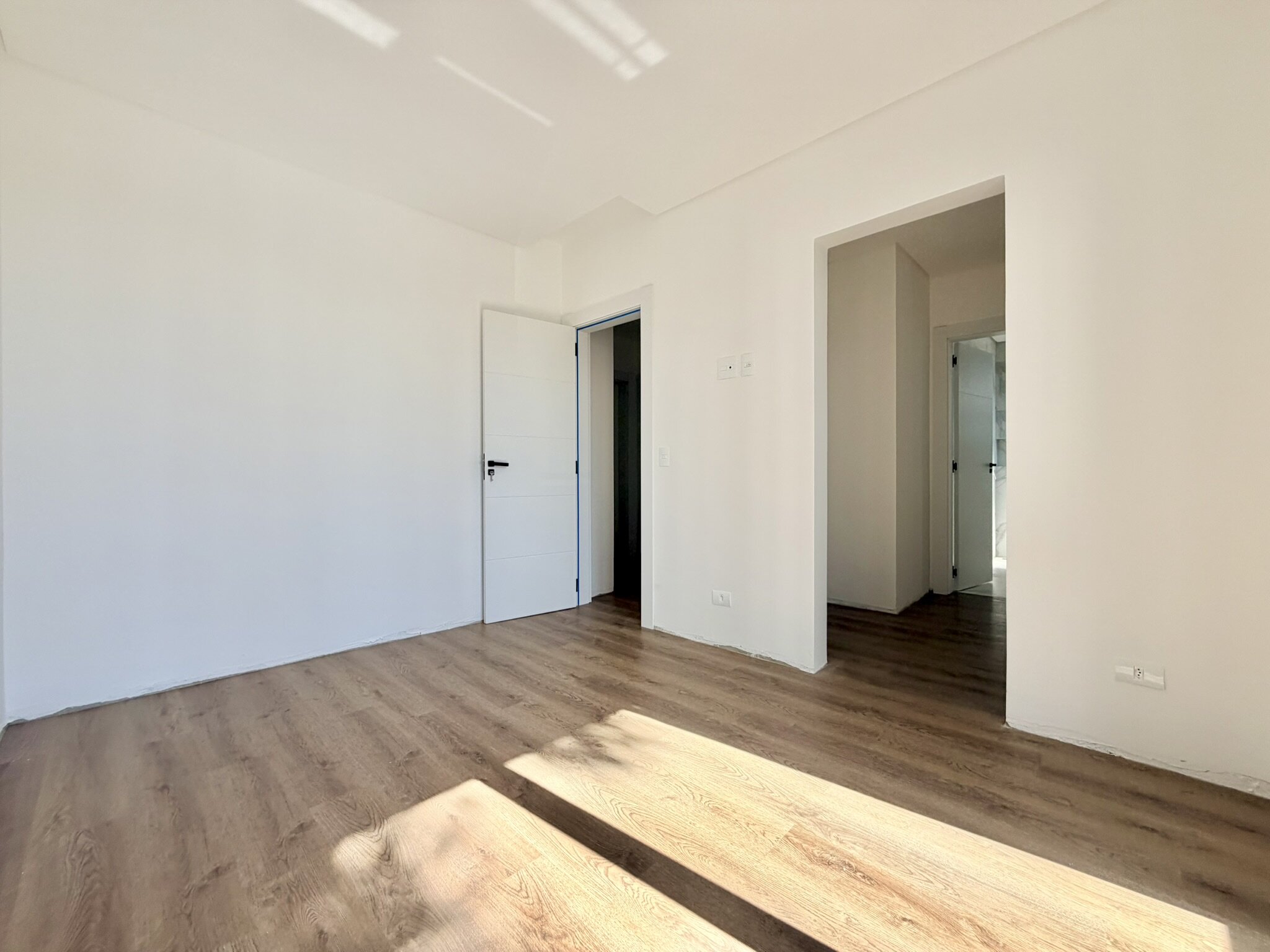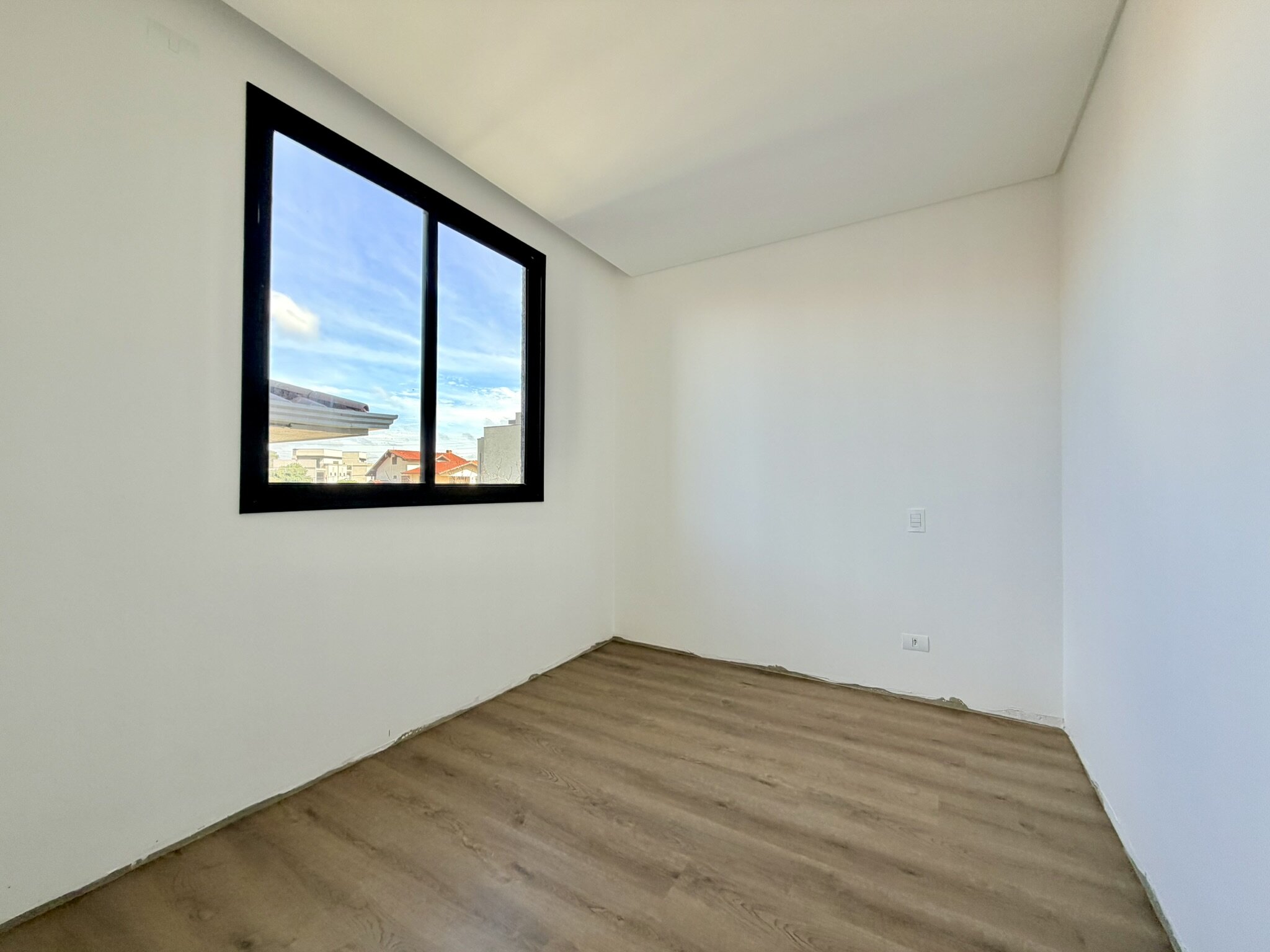 Infraestrutura para ar condicionado, piso porcelanato na sala, cozinha e banheiros e vinílico nos quartos.